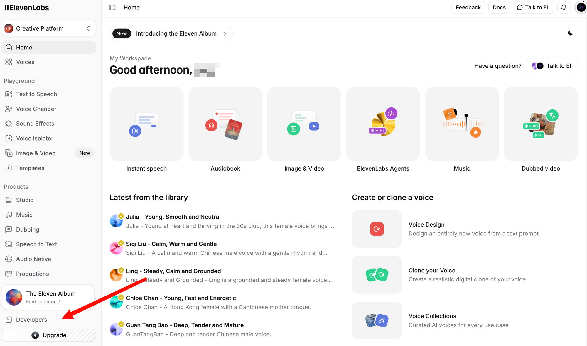 Step 1: Create a free account. Even the free plan includes API access with 10,000 characters per month.