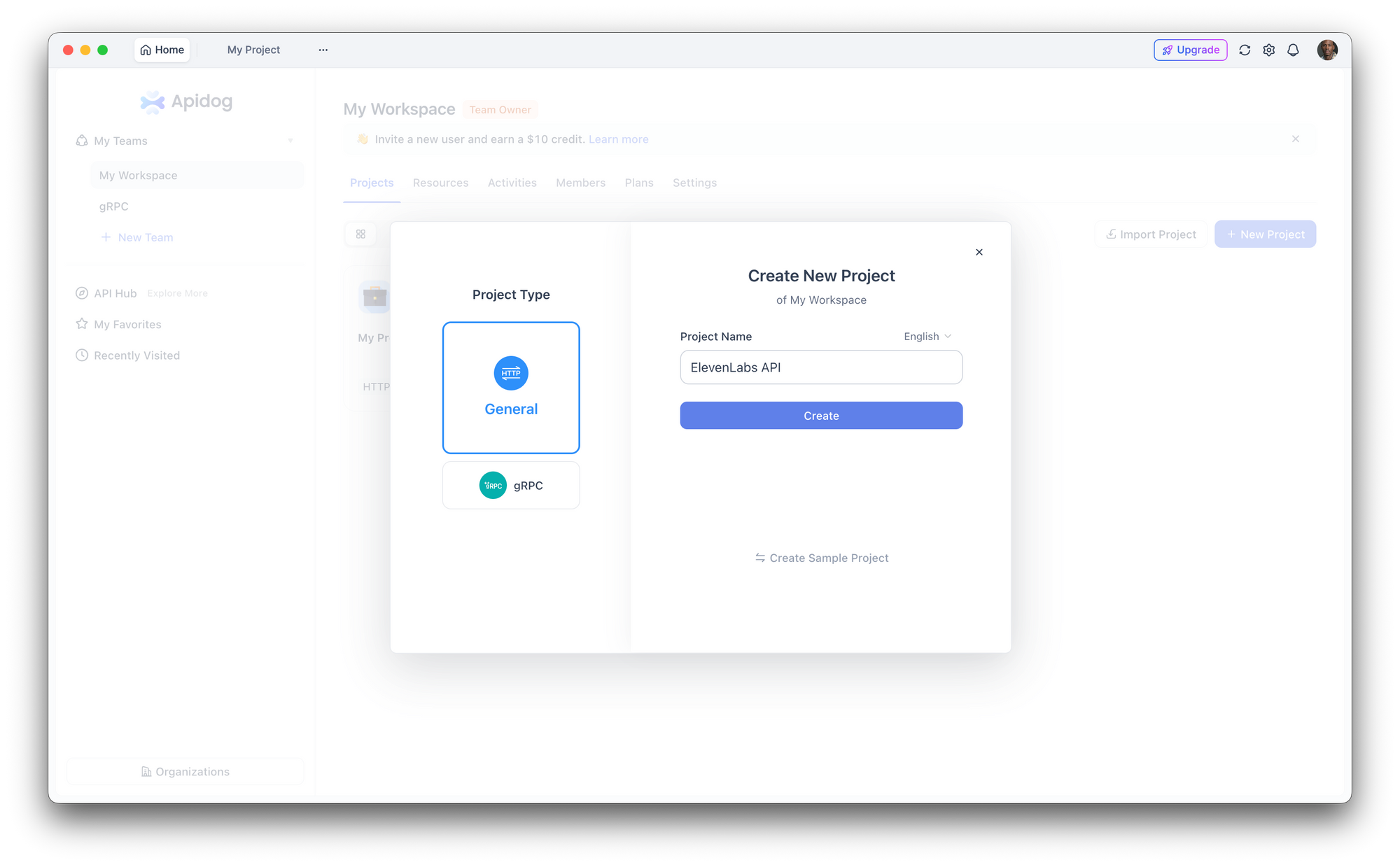Open Apidog and create a new project. Name it "ElevenLabs API" or add the endpoints to an existing project.