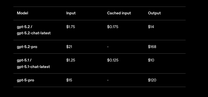 GPT-5.2 Thinking (gpt-5.2) mirrors these rates, making it cost-effective for balanced tasks. However, GPT-5.2 Pro (gpt-5.2-pro) demands more: $21 per 1M input and $168 per 1M output. This premium reflects its superior accuracy on pro-level queries, but you evaluate ROI carefully.