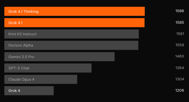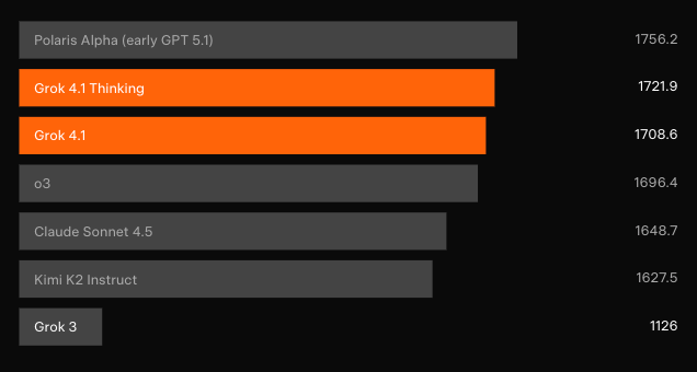 Direct head-to-head data remains sparse hours after launch, but LMArena Elo ratings provide the clearest signal. Grok 4.1 Thinking outperforms every released configuration from OpenAI, Anthropic, Google, and Meta by margins that typically require full architectural leaps.