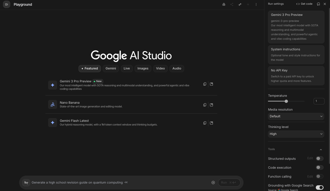 Google AI Studio functions as the primary interface for free access. Here, you prototype prompts, generate API keys, and call models directly. Preview models like Gemini 3 Pro appear automatically in the model selector when available in your region.