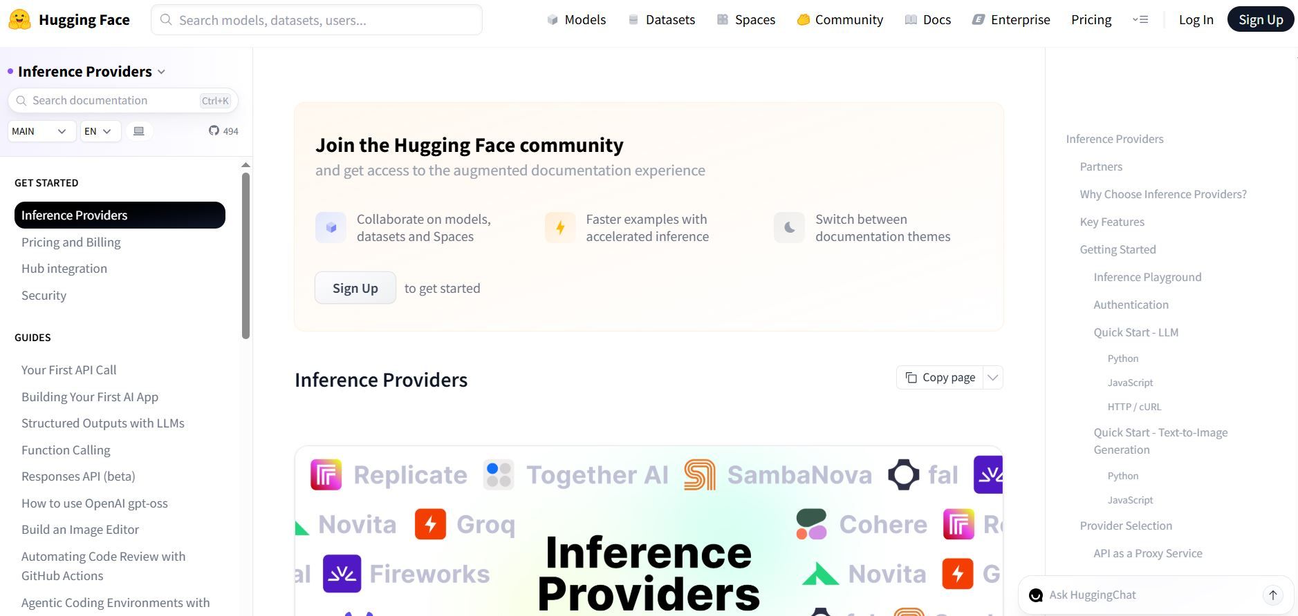 Hugging Face hosts 500,000+ models and datasets. The Inference API provides access to thousands through standardized endpoints. The community-driven approach produces exceptional diversity experimental architectures appear within days of publication.