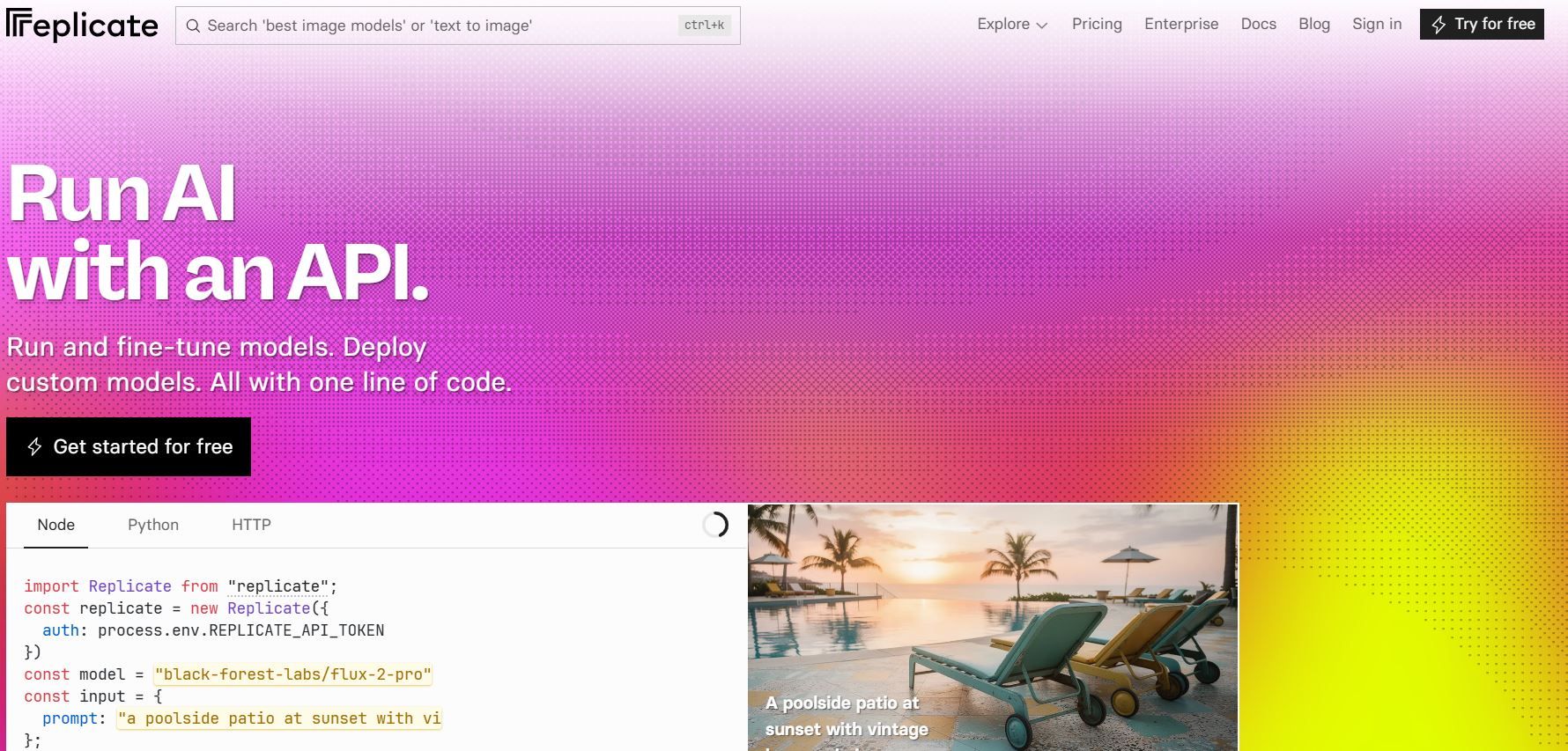Replicate functions as the antithesis of locked-in platforms. The service provides access to hundreds of machine learning models through a unified API, but emphasizes model diversity and creator choice.
