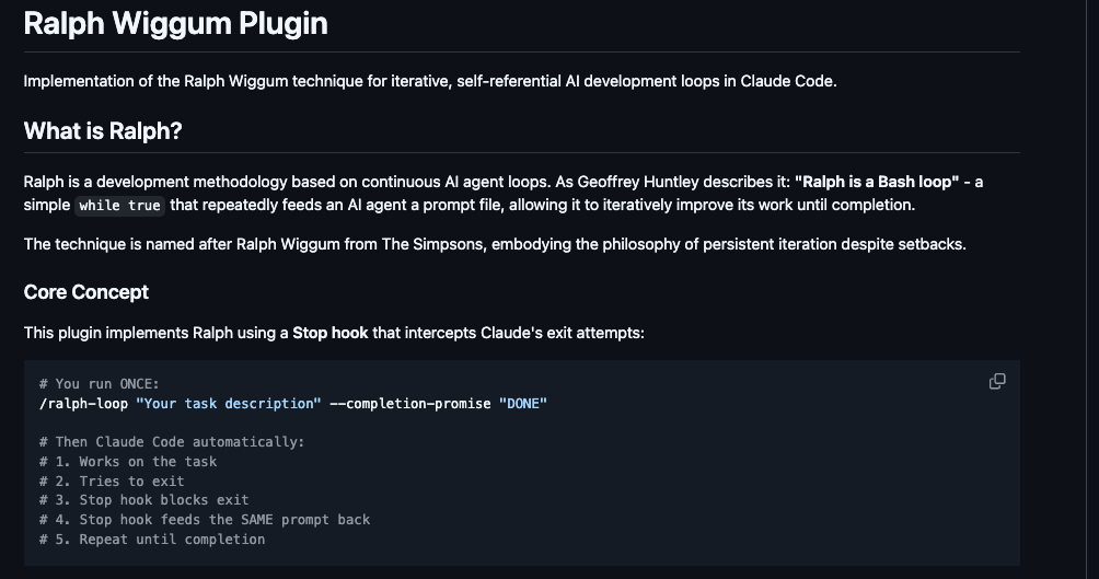 Transitioning to its origins, Geoffrey Huntley and contributors developed the technique, which the Claude Code team formalized into a plugin. Available on GitHub, it includes hooks and scripts that integrate seamlessly with Claude's ecosystem.