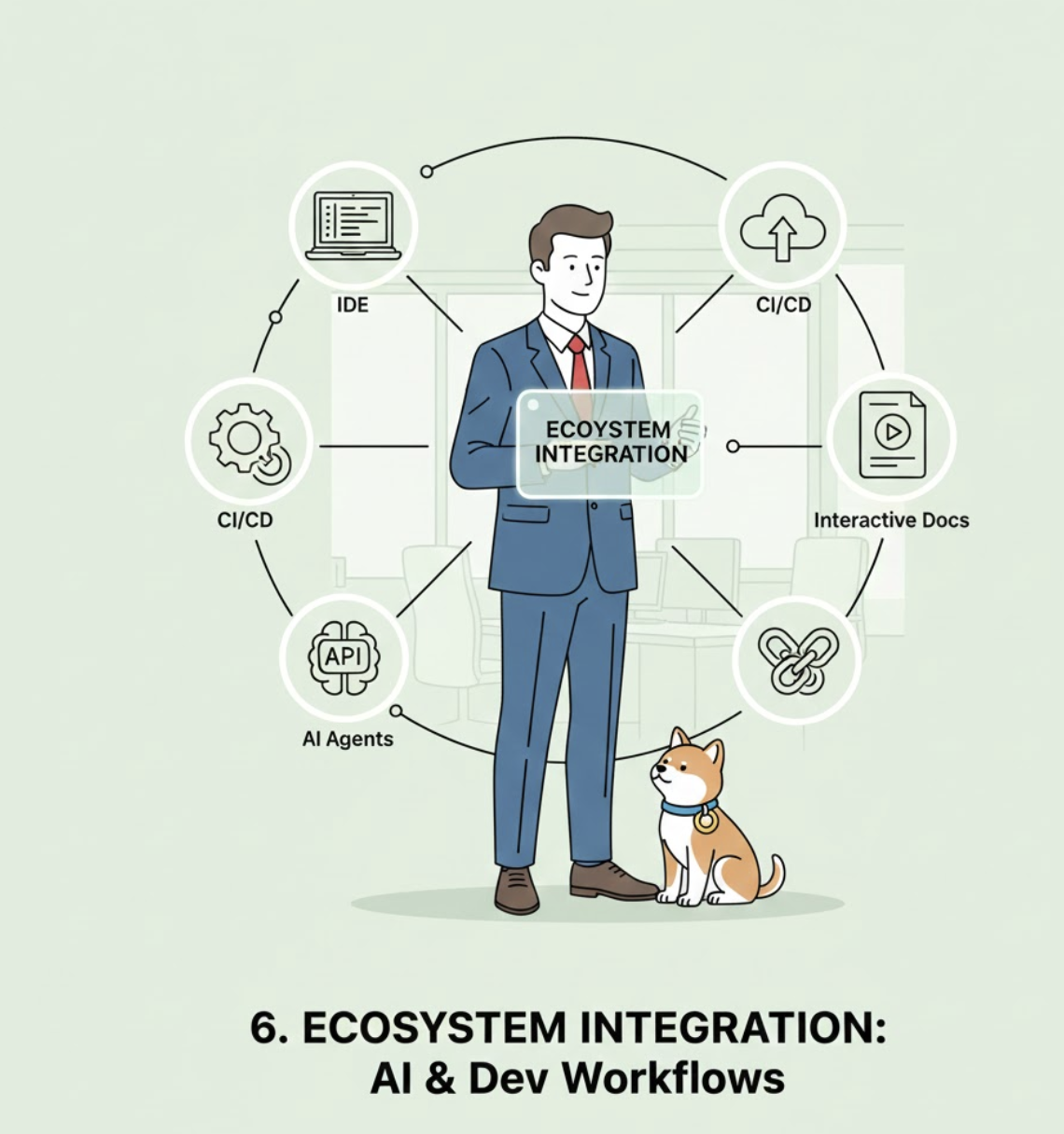 現代のプラットフォームの価値は、そのスタンドアロン機能だけでなく、既存のエンジニアリングシステムにシームレスに統合できる能力によって測られます。Apidogの2025年のエコシステム開発は、IDE、CI/CDパイプライン、そして新たなAIネイティブワークフローに直接組み込まれる基盤インフラストラクチャとなるための戦略的な動きを表しています。