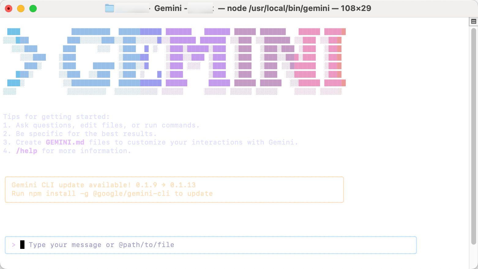 インストール後、ターミナルでgeminiと入力するだけでインタラクティブCLIが起動します。